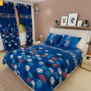 JUEGO DE SABANAS MICROFIBRA CÍRCULOS FONDO AZUL CON CAMEL