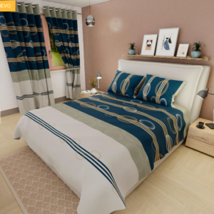 JUEGO DE SABANAS MICROFIBRA LÍNEAS ABSTRACTAS FONDO BLANCO CON AZUL