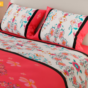 JUEGO DE SABANAS MICROFIBRA BLANCAS FONDO ROSADO Y VERDE